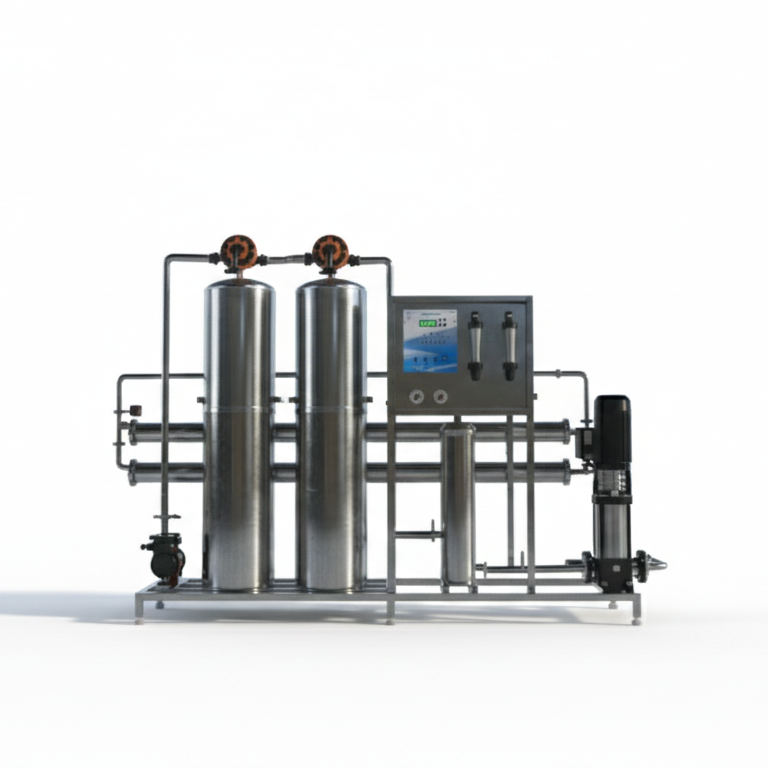 This RO plant is equipped with dual high-rejection RO membranes, advanced pre-treatment units, and a powerful SS vertical multistage pump to ensure stable pressure and consistent water output. The integrated filtration system effectively removes dissolved salts, bacteria, chemicals, heavy metals, and suspended impurities.